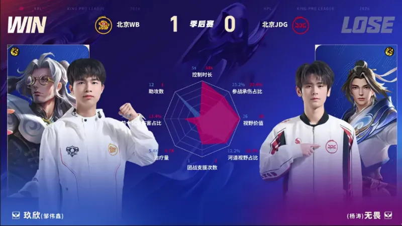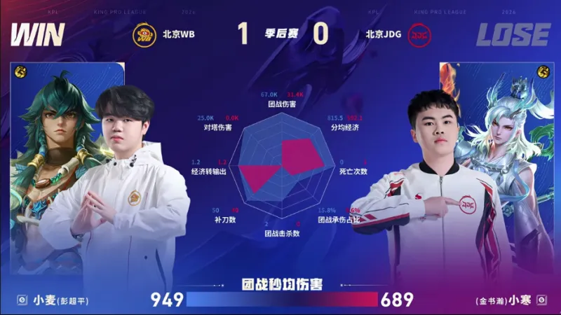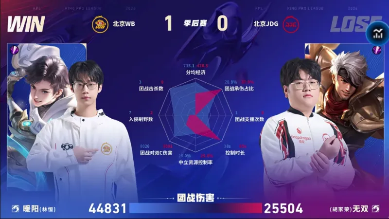 虎扑04月01日讯 WB/JDG第一局数据图:暖阳元坦能抗能打