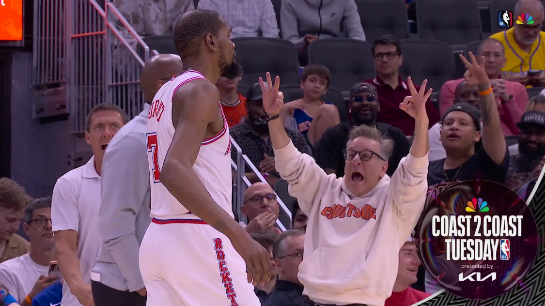 火箭队的杜兰特得到27分、6个篮板和8次助攻,谢泼德得到20分和5个篮板,伊森得到17分和8个篮板,汤普森得到17分、4个篮板和8次助攻,史密斯得到15分和6个篮板,申京得到13分、5个篮板和10次助攻。尼克斯队的唐斯得到22分和8个篮板,哈特得到13分和5个篮板,布伦森14投5中,得到12分、6个篮板和8次助攻,阿尔瓦拉多得到12分,克拉克森得到10分。